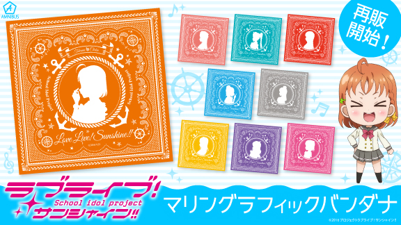 Aqoursメンバーを応援する気持ちをギュっと込めた「マリングラフィックバンダナ」の再販を開始いたしました。