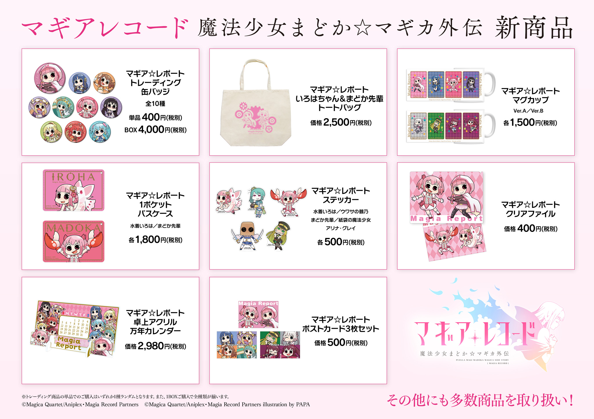 今回のコラボショップでは、「マギアレコード 魔法少女まどか☆マギカ外伝」「マギア☆レポート」の新商品を会場にて先行販売いたします。