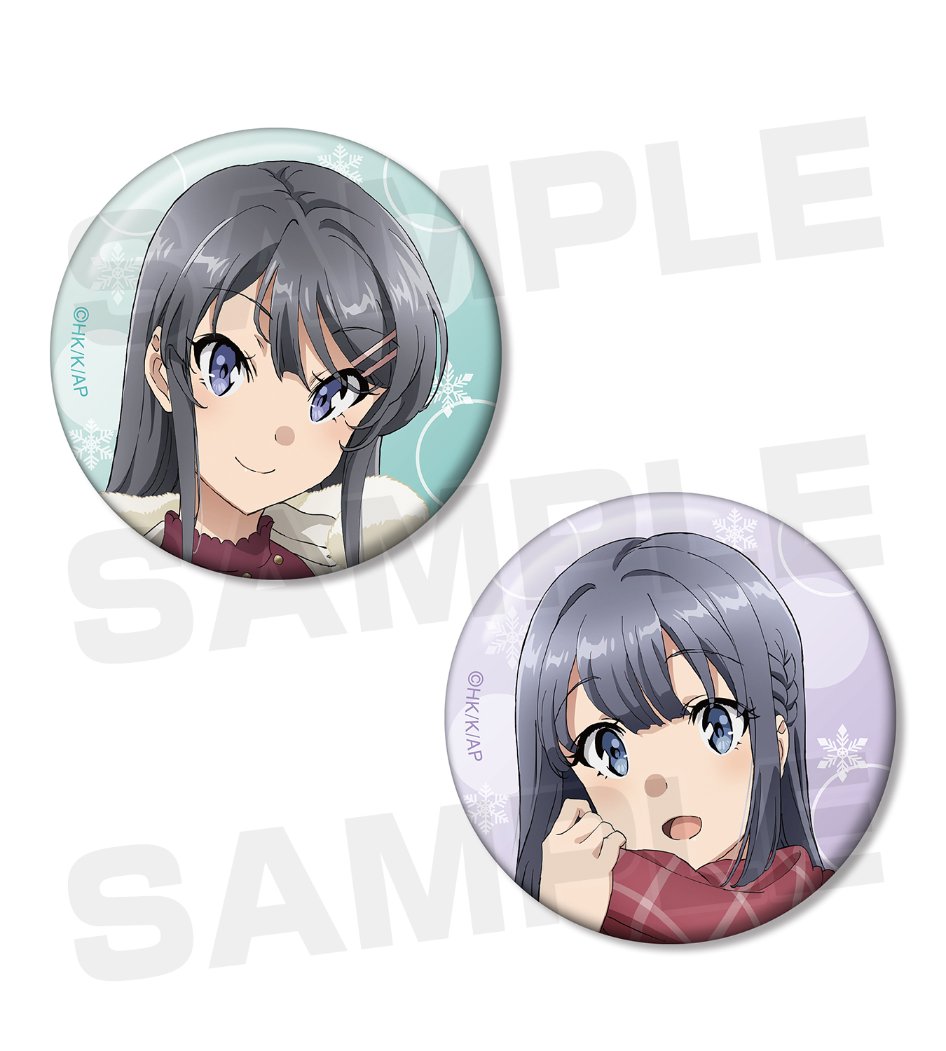 ■描き下ろしイラスト 缶バッジ(桜島麻衣 冬服ver./牧之原翔子 冬服ver.)