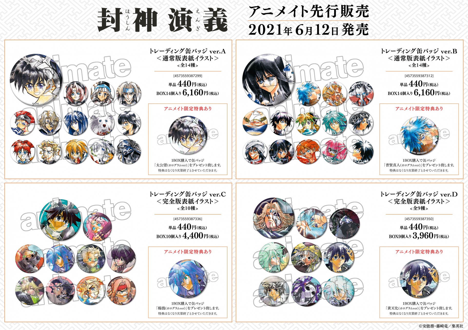 1BOX購入で「普賢真人&伏羲 ミニ色紙 アニメイト限定特典」をプレゼントいたします。特典はなくなり次第終了とさせていただきます。