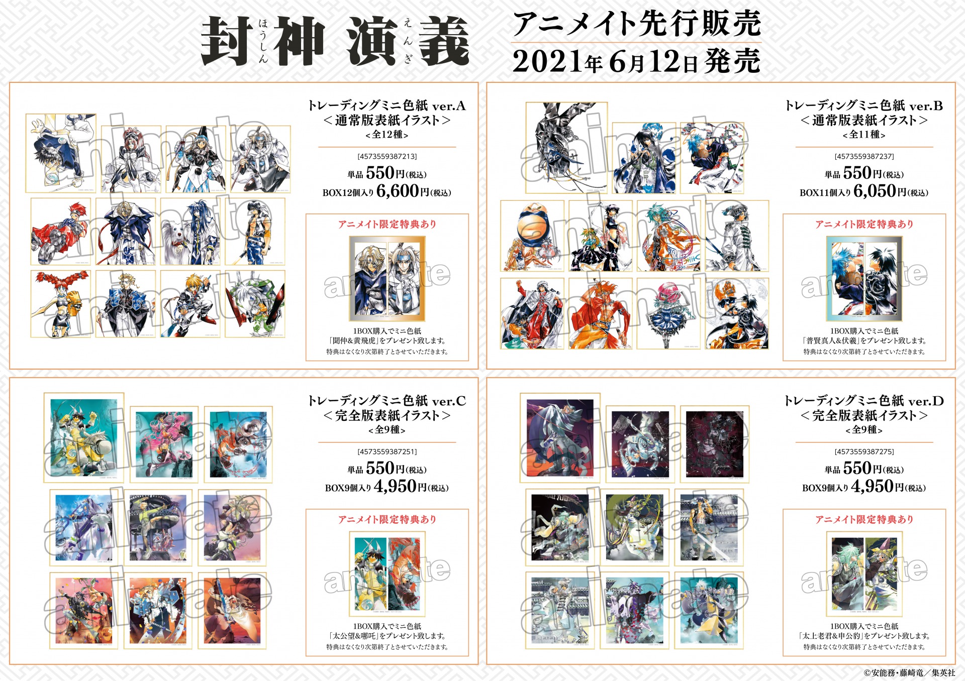 ※ECサイト「AMNIBUS」では、BOX購入特典として「太公望&楊戩 ミニ色紙 AMNIBUS限定特典」を予定しております。